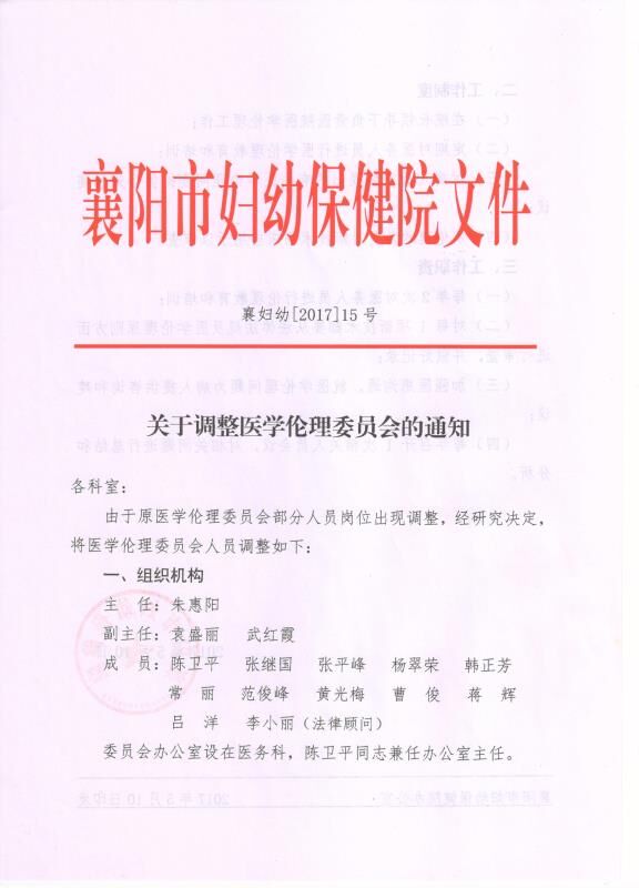关于调整医學(xué)伦理(lǐ)委员会的通知文(wén)件