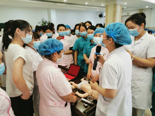 6月28号下午,襄阳市妇幼保健院江北儿科(kē)党支部一行六人在儿科(kē)主任李燕妮的带领下带着复苏培训器材,来到市區(qū)一家医院对医护人员进行新(xīn)生儿窒息复苏抢救的培训,培训现场有(yǒu)40多(duō)人,通过理(lǐ)论學(xué)习和现场的操作演练,努力提高医护人员对新(xīn)生儿窒息复苏的抢救水平。